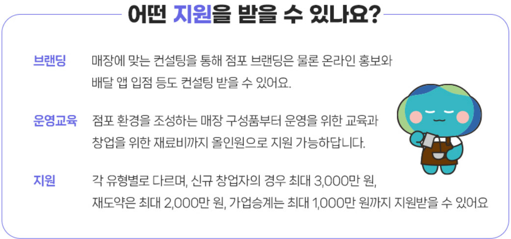 신규 창업 : 전통시장이나 상점가 빈 점포 또는 기존 점포에 창업을 희망하는 청년