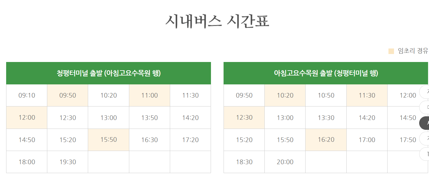 *가평시티투어버스 시간표