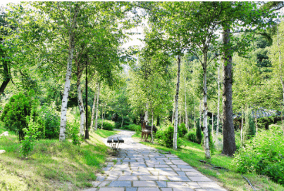 하늘 높이 뻗은 잣나무 숲 사이에 펼쳐진 길을 따라 여유롭게 시를 감상할 수 있는 산책로입니다. 여름에는 시원한 그늘을 제공하여 쉼터로 이용되기도 합니다.