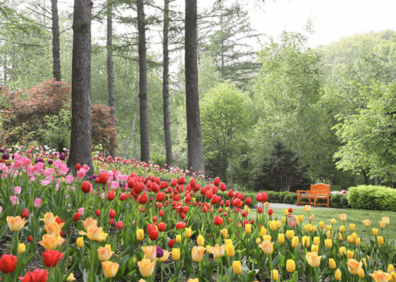 봄볕에 반짝이는 땅과 신록으로 물든 아침고요수목원은 축령산의 빼어난 산세와 어우러져 그림 같은 풍경을 자아낸다. 튤립, 철쭉, 수선화 등 봄꽃 군락을 중심으로 목련, 진달래, 매화, 개나리, 벚꽃 등 다양한 봄꽃들이 가득 피어난 황홀한 모습을 감상할 수 있다.