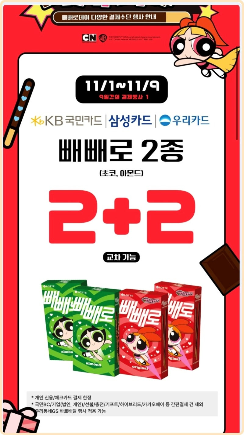 마지막으로 GS 편의점에서는 빼빼로데이를 위한 다양한 할인 행사를 제공합니다. GS25에서는 특정 카드 결제 시 50% 페이백 이벤트를 진행하며, 다양한 빼빼로 상품을 할인된 가격으로 구입할 수 있는 기회를 마련하였습니다.