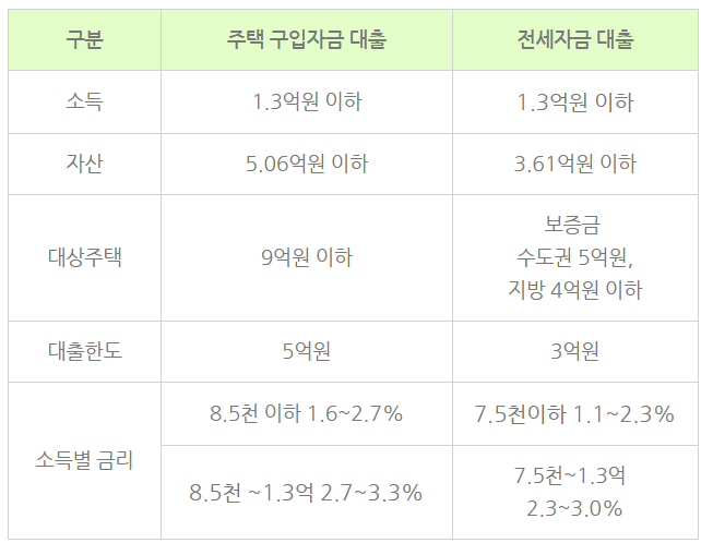 신청대상: 대출신청일 기중으로 2년 이내 출산한 무주택 가구 (단, 2023년 이후 출생자부터)