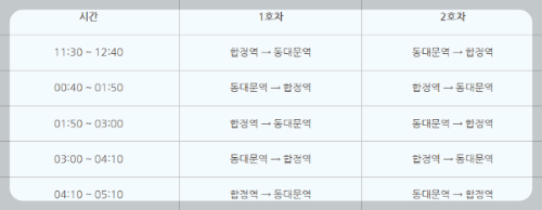 합정역 방면이나 동대문역에 필요한 노선을 찾을 수 있고 정류장마다 환승할 수 있는 지하철도 표시되어 있어 새벽에 이동하시는 분들에게 많은 도움이 될 것 같습니다.