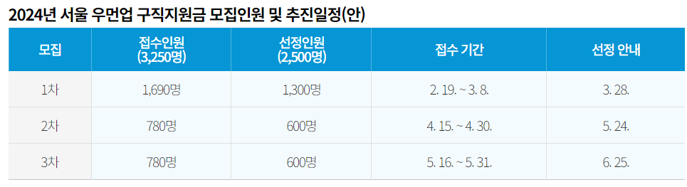 1. 구직지원금 모집인원 및 일정( 1차,2차,3차)