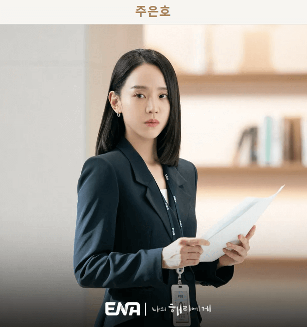 주은호, 정현오의 후배인 MZ 아나운서. 심진화는 보도국장의 최애로 선배인 주은호의 자리를 위협하며, 전혀 위협 안되던데 누구의 앞에서도 주눅 들지 않는 맹랑하고 당돌한 매력을 가지고 있다.