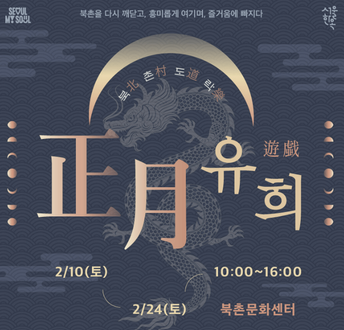 국립민속박물관 '2024년 갑진년 정월대보름 한마당'과 북촌한옥마을 -북촌도락 2월 '정월유희', 남산골한옥마을: 2024 남산골 세시올림 정월대보름 <휘영~청> 이렇게 서울에서 열리는 정월대보름 축제의 정보와 위치를 알아보겠습니다.