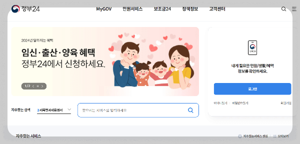 1) 정부24 or 복지로 홈페이지에 접속합니다.