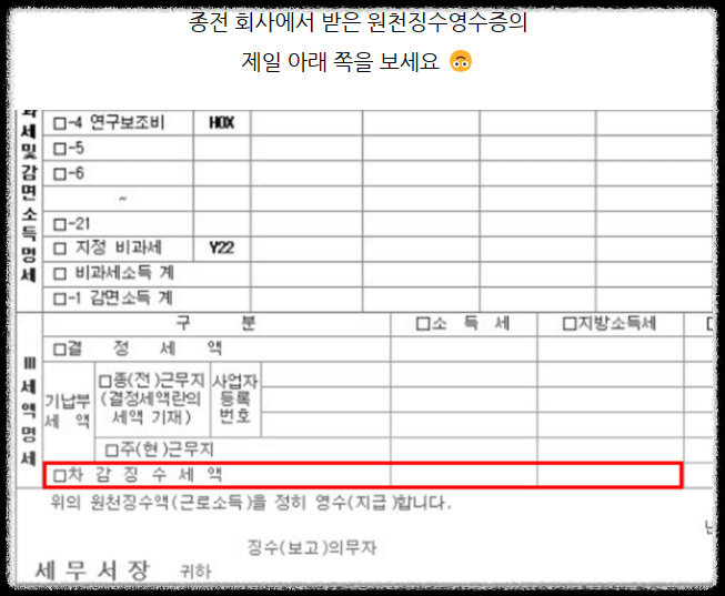 1. 종전 회사의 원천징수영수증을 현재 회사에 전달하기