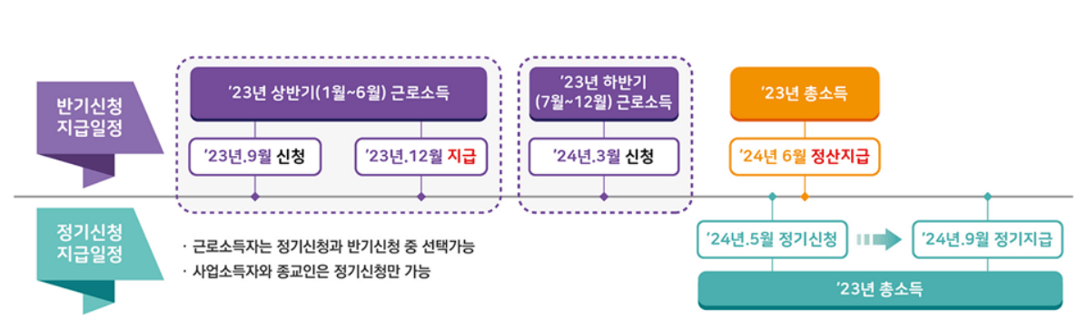 ** 다만, 근로소득 외의 소득이 있는 거주자가 반기별 신청한 경우 정기신청한 것으로 보아 2024년 9월에 정산합니다.