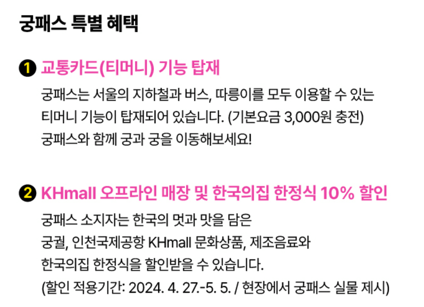 ㅇ수령방법: 궁패스 바코드 확인 후 실물 궁패스로 교환(최초 1회)