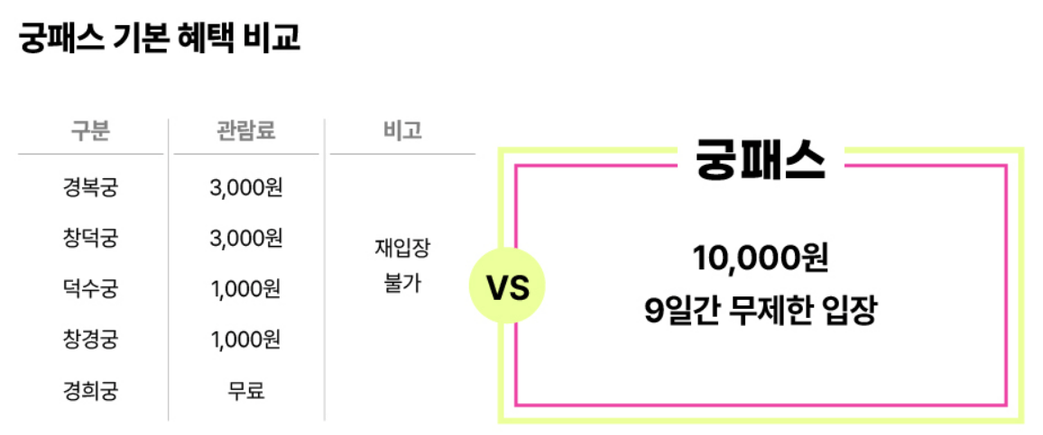 가격정보 할인: 궁패스 50%할인(장애인, 국가유공자) 5,000원
